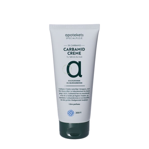 Apotekets Specialpleje Carbamid Creme 5 % er til daglig pleje af tør og ru hud.
