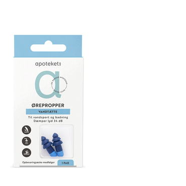 Apotekets Ørepropper til vandsport er vandtætte ørepropper, der beskytter øregangen effektivt mod indtrængning af vand.