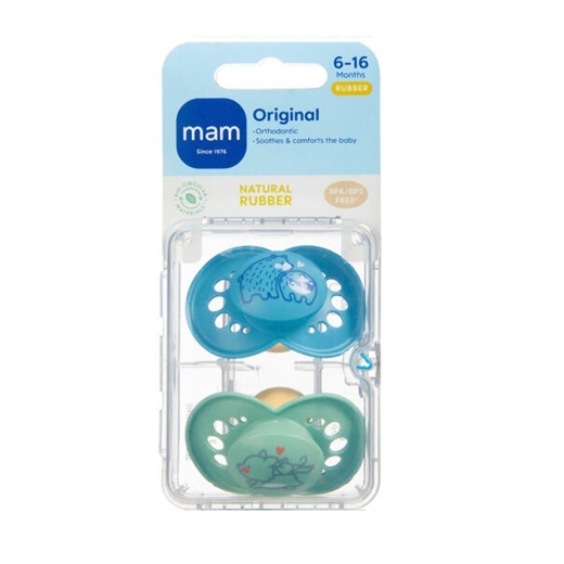 MAM Original latex sutter findes i flere forskellige diskrete og naturlige farver med påtrykte dyremotiver på knoppen.
