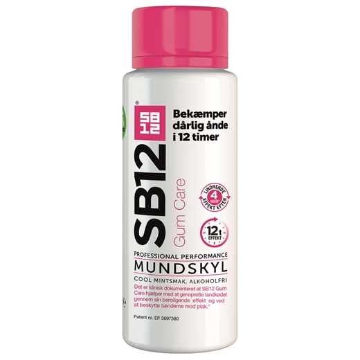 SB12 Gum Care bekæmper årsagen til dårlig ånde og reducerer forekomsten ved at neutralisere de ildelugtende svovlgasser i munden. SB12 virker med det samme og giver en behagelig ånde i 12 timer.