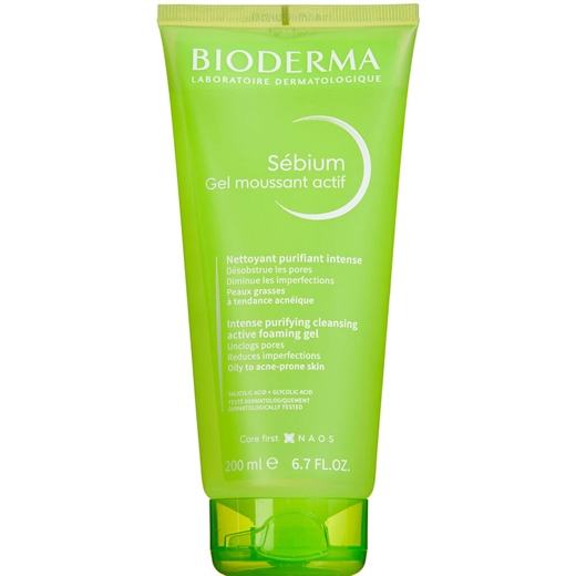 Bioderma Sébium Gel Moussant Actif er en intensivt skummende rensegel, der kombinerer to udglattende og aktive ingredienser (salicyl- og glykolsyre). Formlen renser intensivt uden at udtørre huden og respekterer dens naturlige balance. Renseproduktets geltekstur forvandler sig til et skum under brug og efterlader huden blød og med en behagelig fornemmelse. Bioderma Sébium Gel Moussant Actif reducerer urenheder og er velegnet til fedtet hud og hud med tilbøjelighed til akne. Sébium Gel Moussant Actif indeholder det patenterede D.A.F.™*-kompleks, der øger hudens tolerancetærskel. Produktet er testet under dermatologisk kontrol og har god hudtolerance.