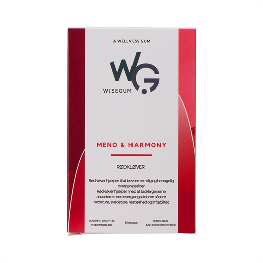 Fyldemiddel: Tyggegummibase* ((gummibase, sødestoffer (isomalt, sorbitol), antiklumpningsmiddel (talkum), aromaer, emulgatorer (saccharoseestere af fedtsyrer), antioxidant (tocopherolrig ekstrakt)), sødestoffer og overfladebehandlingsmidler (xylitol, sorbitol, mannitol), rødkløverekstrakt (_Trifolium pratense_ L., maltodextrin), aromaer, overfladebehandlingsmidler (akaciegummi, risstivelse, calciumcarbonat, maltodextrin, carnaubavoks), farve (brilliant blue FCF), antiklumpningsmidler (talkum, siliciumdioxid, magnesiumsalte af fedtsyrer), magnesium, sødestoffer (acesulfam K, sucralose, steviolglykosider fra Stevia, thaumatin).